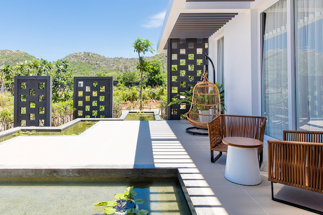 Tuy nhiên, giá trị cốt lõi trong thiết kế của các villas không chỉ nằm ở hình thức hay tiện ích, mà còn ở triết lý hòa mình trọn vẹn với thiên nhiên. Từng không gian được bố trí mở, đón nắng, đón gió biển và bao quanh bởi mảng xanh trong lành, giúp du khách vừa tận hưởng tiện nghi cao cấp, vừa thư giãn tuyệt đối giữa thiên nhiên khoáng đạt.