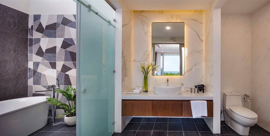 – Toilet trang bị đầy đủ amenities: bàn chải, kem đánh răng, dao cạo, lược, mũ tắm…