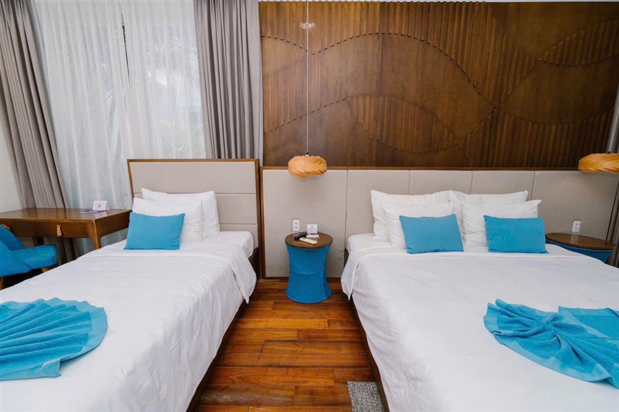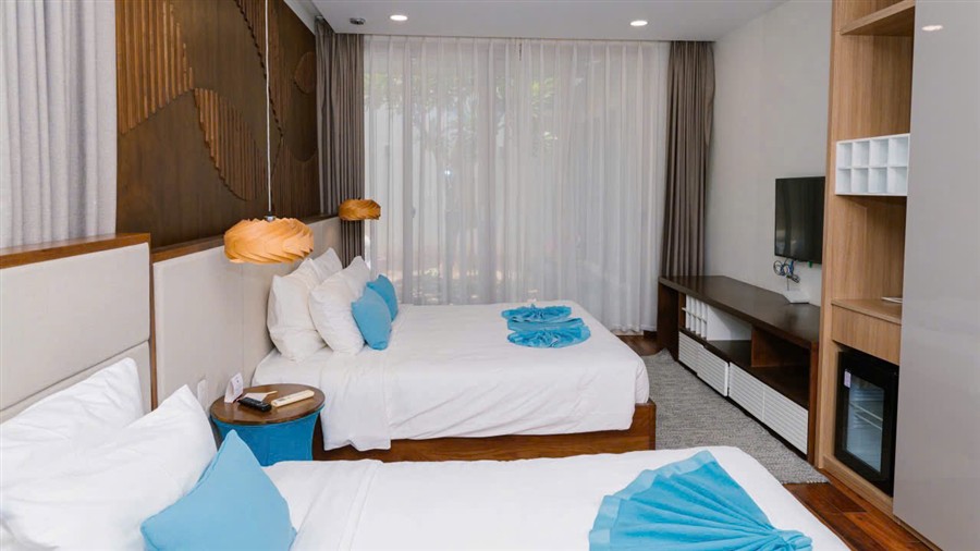 1 phòng lớn gồm 2 giường (1 giường 1m8 + 1 giường 1m2)