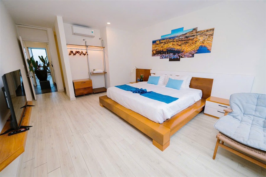 – 5 giường king size 2m x 2m (mỗi giường có thể nằm 2–3 người)